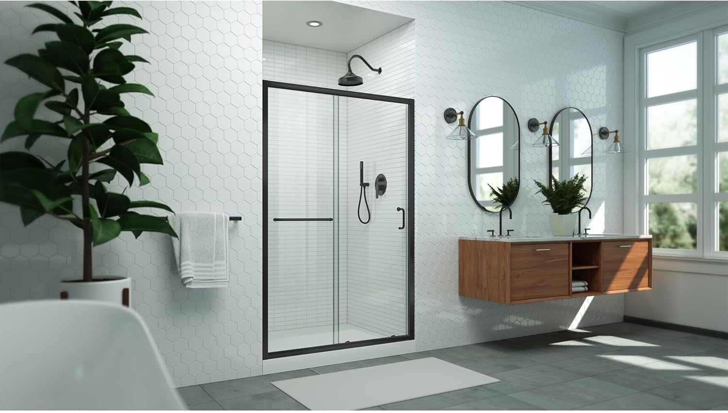 The DreamLine Levantine sliding shower or tub door offers classic style with a modern touch. The Levantine will transform your bathroom with a beautiful balance of functionality, elegance and sophistication. A variety of finishes and glass options will match any bathroom décor. Choose the DreamLine Levantine model for the ultimate solution to your shower project.