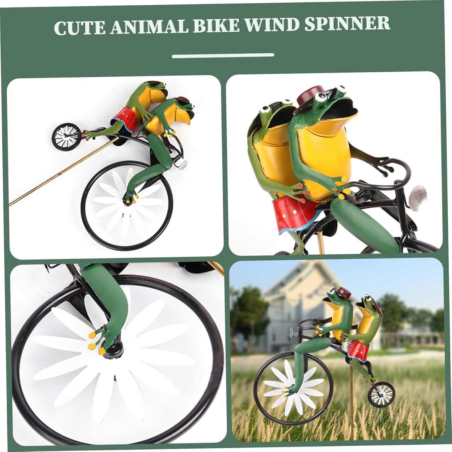 Description: Cute animal on a motorcycle statue, a delightfully fanciful garden decoration with a unique spin when the wind blows.Seeing the novel windmill, will feel happy. A unique frog wind spinner that makes you smile every time you see it. This wonderful, whimsical garden art features two colourful frogs on an old-fashioned penny-style with a unique design. The Wind Spinner can be easily inserted into the soil or grass without any tools, just place it in your garden and enjoy your happy hour. This adorable handcrafted garden decor is ingeniously designed to capture the wind through the spokes giving it a lifelike movement! The animal will start pedaling on windy days. This is a good lawn decoration. Features:. Wind Spinners for Garden. -Color: As shown. -Material: matal. -Size: about 28x75 cm/11.02x29.53 inch. Note: Manual measurement, please allow slight errors on size. The colors may exist slight difference due to different screens. Package Including 1 * Wind Spinners for Garden