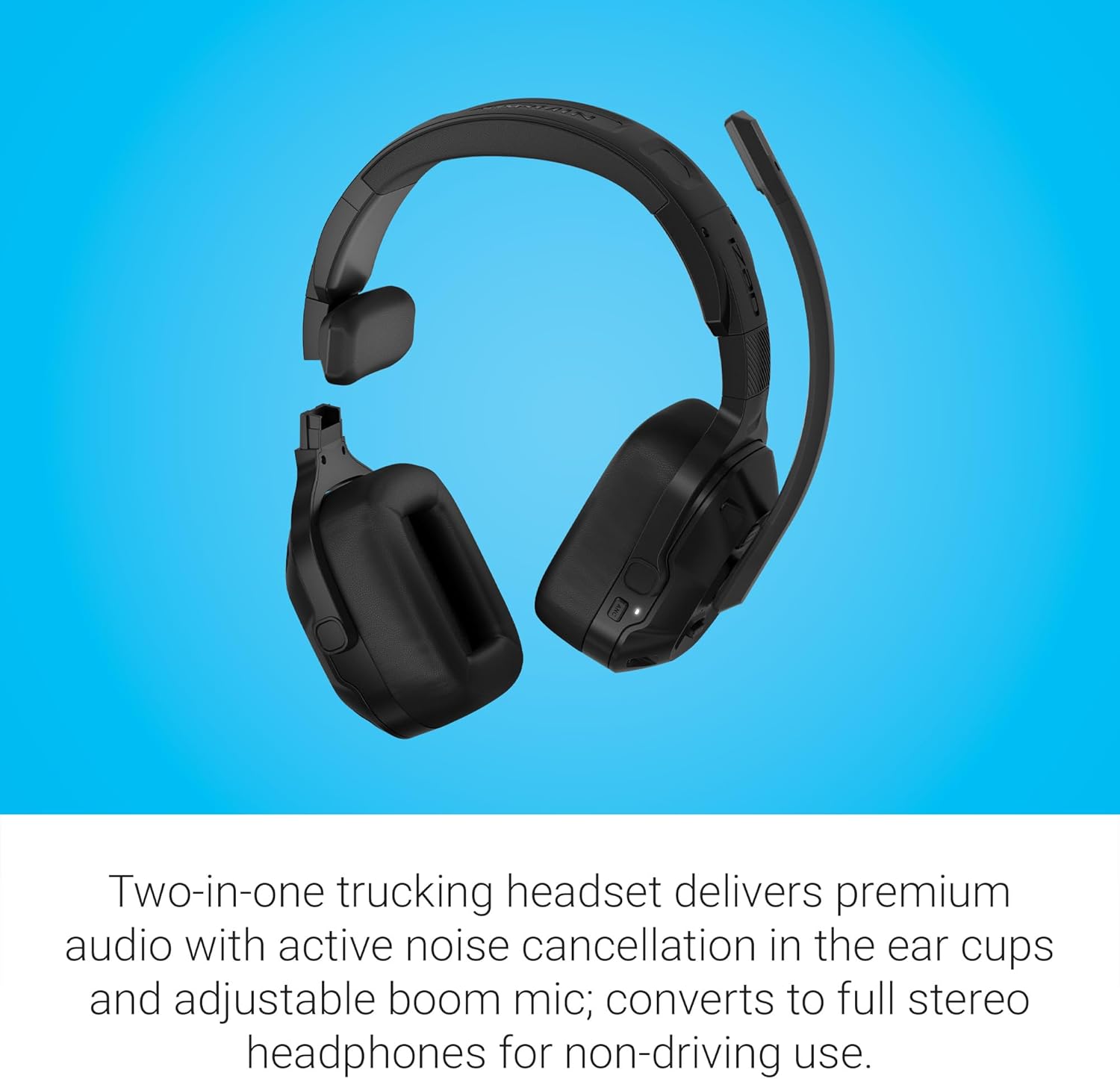 Hear the call, see the way. The premium two-in-one dēzl™ Headset 210 sheds new light on the longhaul audio experience. It combines outstanding noise-canceling technology with ultralong battery life, quick conversion to full stereo headphones when off duty and a useful built-in LED flashlight for hands-free illumination in and out of your truck cab. The flashlight, mounted on the mic boom, easily cycles through red, white and extra-bright white LEDs to provide the lighting intensity you need. Plus, the headset’s superior battery life supports up to 60 hours of continuous talk time with BLUETOOTH® technology. Active noise cancellation in the ear cups provides crystal-clear audio with enhanced bass performance while noise cancellation in the adjustable boom mic distinguishes your voice from background noise, so you can be heard clearly on calls. Seamless integration with a dēzl™ OTR truck navigator (sold separately) lets navigation prompts blend into your headset audio stream while your eyes remain on the road and your hands stay on the wheel.